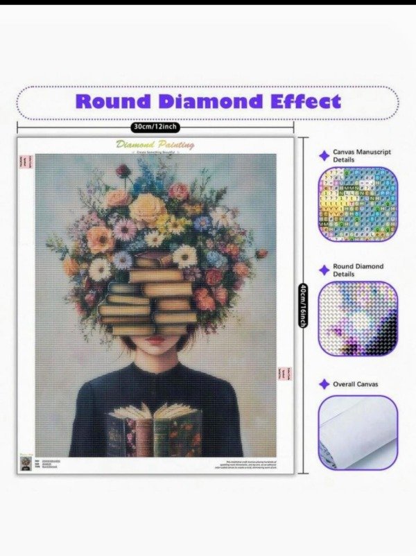 Una vez terminado, presiona los diamantes con un uslero o rodillo, y deja libros durante la noche que ayuden a que los diamantes queden firmemente pegados.