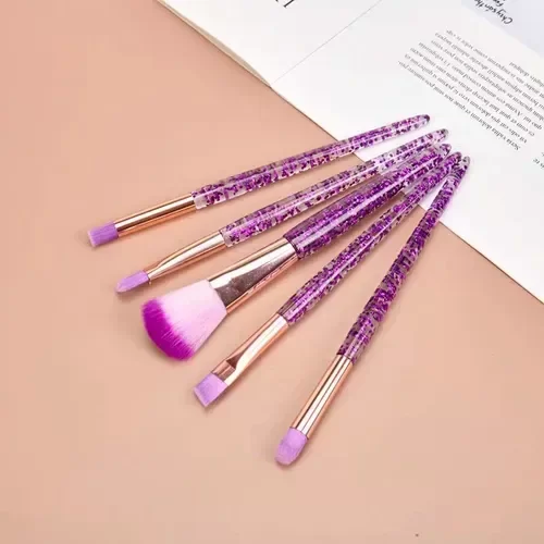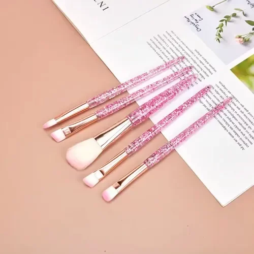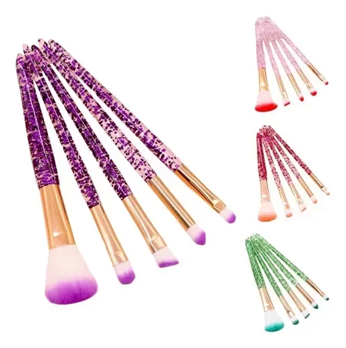 Set X5 Brochas Maquillajes Diamante Brillos Cristal'. Un elegante pack de 5 brochas diseñadas para realzar tu rutina de maquillaje. Cada brocha cuenta con un mango espectacular de acrílico cristal con glitter, aportando un toque de glamour a tu colección. Las cerdas, elaboradas con cabello sintético de alta calidad, garantizan una aplicación suave y uniforme de productos, desde bases hasta sombras. Este set incluye un práctico estuche, ideal para mantener tus brochas organizadas y protegidas.